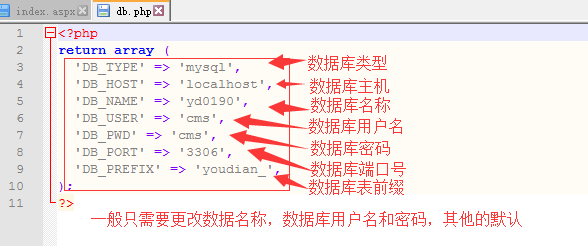 2 目錄APP/CONF/DB.PHP 手動的填寫數據庫信息