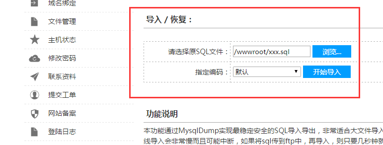 3 虛擬主機導入SQL文件(DATA目錄下面 sql文件)