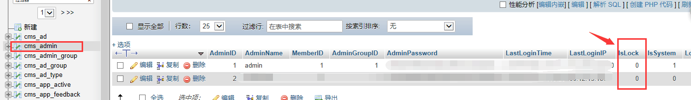 第二步:把表里面的 IsLock 的值改為0即可