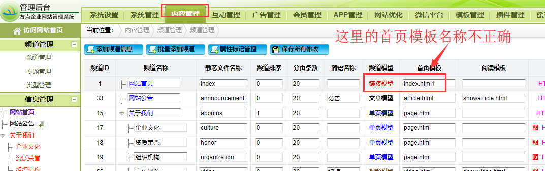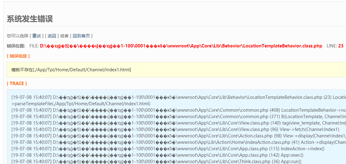 模板文件不存在,原因可能是模板文件缺失或者被刪除導致,也有可能是首頁模板的靜態靜態文件名被修改【