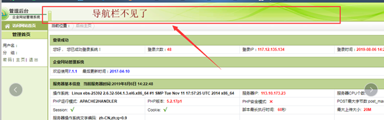 網(wǎng)站登錄后臺不出現(xiàn)上面的導(dǎo)航,是什么原因?