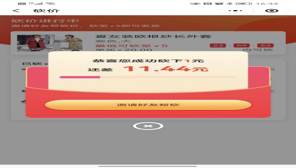 砍價:通過價格刺激,獲取活動的裂變式傳播效果。