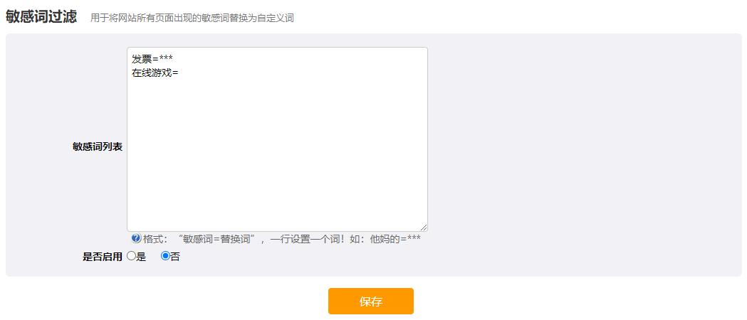 設置敏感詞列表并啟用后,網站中任何頁面出現的敏感詞將會被替換