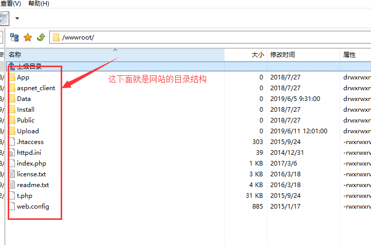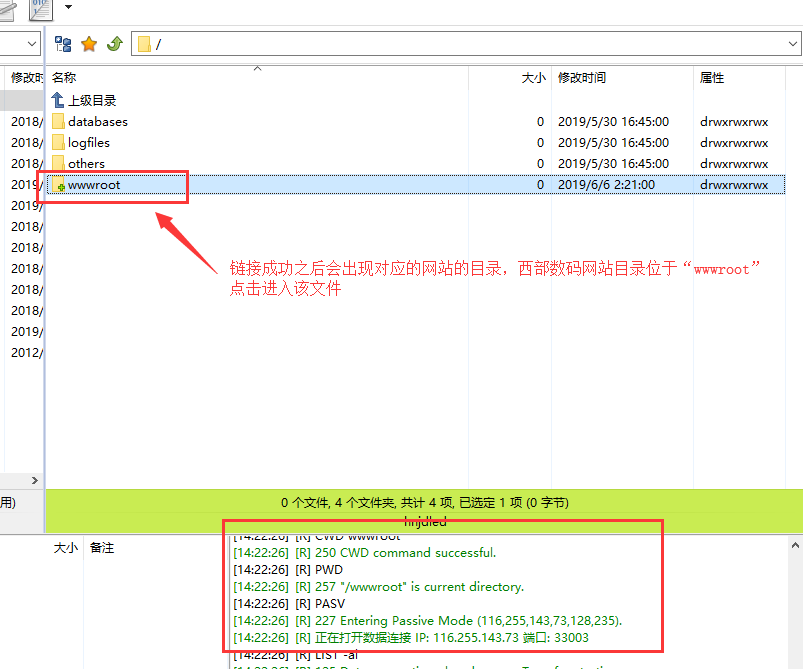 3.找到對應的存放網站的目錄“西部空間”網站目錄位于WWWROOT根目錄下