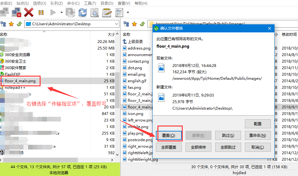 FTP如何傳輸和替換文件