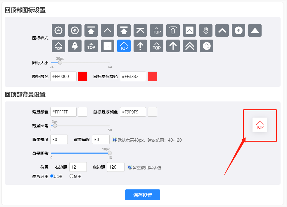 返回頂部,可以根據網站風格自定義樣式,具體操作方法如下: