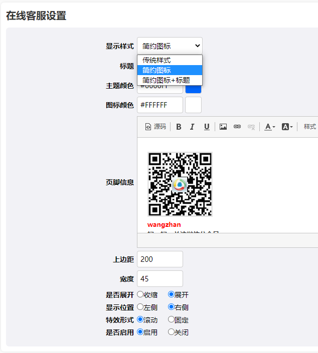 1)傳統(tǒng)樣式頁(yè)腳信息會(huì)在在線客服的框里顯示對(duì)應(yīng)的信息。