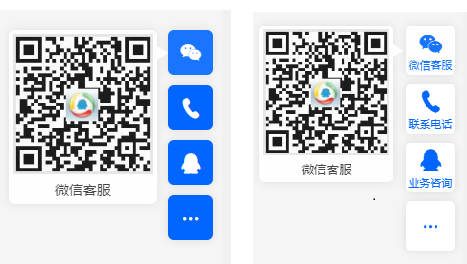 在線客服有三種樣式:分別為傳統(tǒng)樣式、簡(jiǎn)約圖標(biāo)(圖左)、簡(jiǎn)約圖標(biāo)+標(biāo)題(圖右)三種樣式